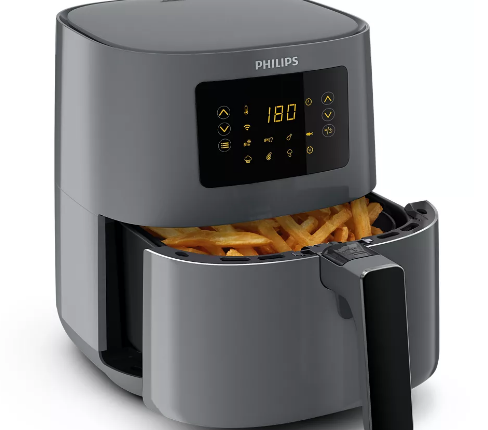 Philips 5000 Serisi Bağlı Airfryer, Rapid Air teknolojisi sayesinde sıcak havayı döndürerek düşük yağ kullanımıyla dışı çıtır çıtır, içi yumuşacık ve leziz yiyecekler hazırlamanızı sağlar. İşte benzersiz denizyıldızı tasarımıyla sunulan sağlıklı kızartma deneyimi!